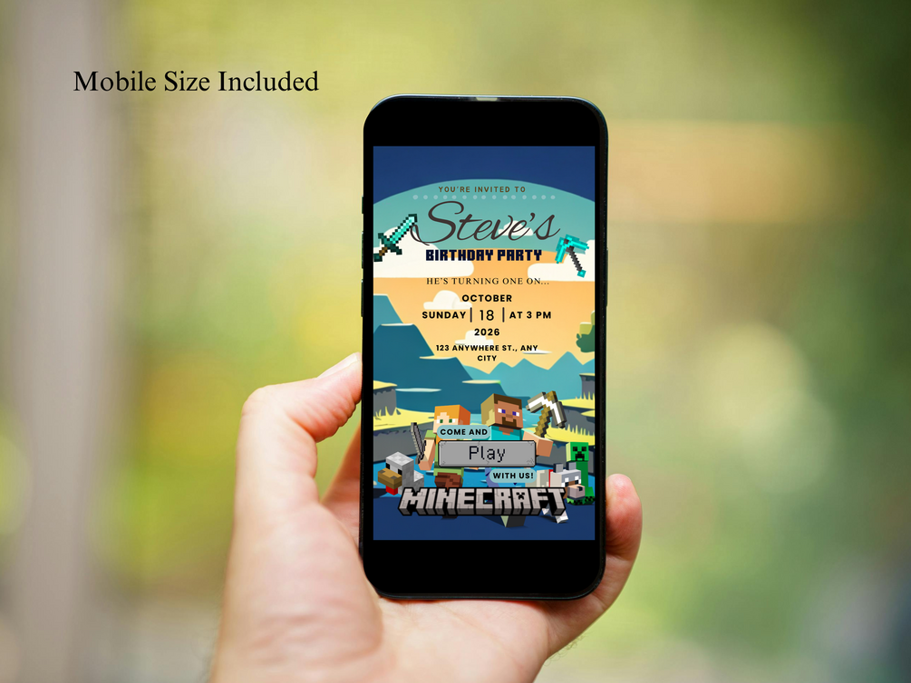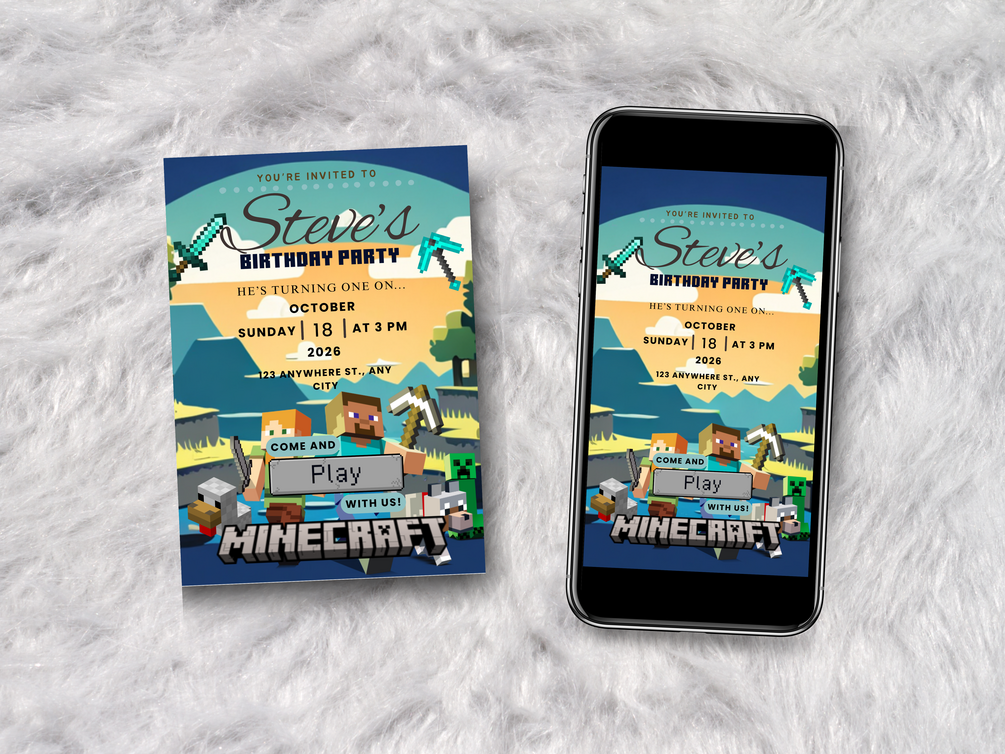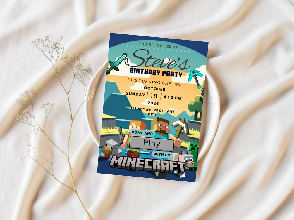 Whether you're inviting family or friends, this fun and creative design brings the pixelated world of Minecraft to life β without the stress of starting from scratch. Just open, edit, and share!